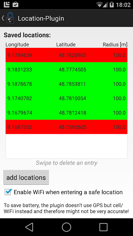 Disables or enables the lockscreen based on your current location so you don't have to enter your PIN, password or pattern code while you're at home.