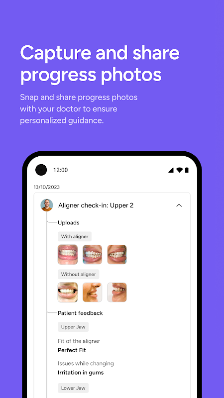 Uygulama içi tedavi fotoğrafları çekin ve diş hekiminizle güvenli bir şekilde paylaşın; sanal değerlendirmeleri ve kişiselleştirilmiş rehberliği destekleyin.