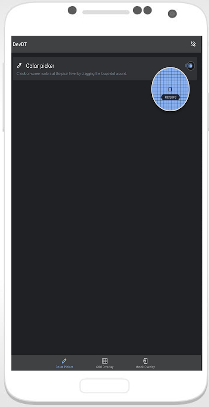 Color Picker - Use your finger to drag around a loupe magnifier and identity the hex codes of colors at the pixel level you can also tap on hex text to copy it into clipboard.