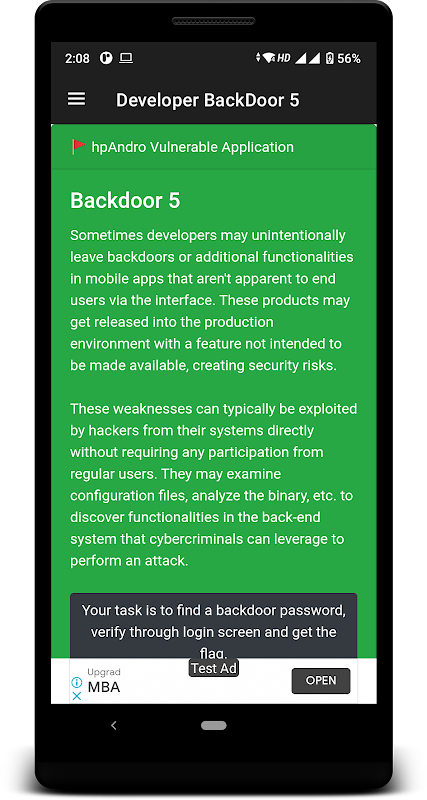 Sometimes developers may unintentionally leave backdoors or additional functionalities in mobile apps that aren't apparent to end-users via the interface. These products may get released into the production environment with a feature not intended to be made available, creating security risks.