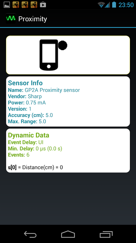 List all sensors available on the device along with their current values and provides (when available) a simple application for each sensor.