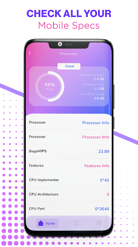 Cihaz bilgisi- CPU x, Bluetooth, pil sağlığı kontrolü, telefon sıcaklık kontrolü, el feneri, sensör bulucu, güvenlik ve çok daha fazlası gibi birçok özellikle donanım ve yazılım sistem bilgilerini kontrol etmek için tasarlanmış bir sistem durumu telefon bilgisi uygulamasıdır< /b>