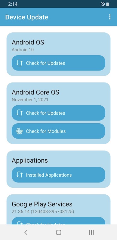 Device Update ile cihazınızın yazılım güncellemelerinden haberdar olun! Bu basit ve etkili uygulama, Android telefonunuz veya tabletiniz için çeşitli yazılım güncellemelerini kontrol etmenize ve yönetmenize yardımcı olur. Android işletim sistemini, yüklü uygulamaları, Google Play Hizmetlerini veya Android WebView gibi sistem bileşenlerini güncellemek istiyorsanız, Device Update, cihazınızın her zaman en son sürümleri çalıştırdığından emin olmanızı kolaylaştırır.