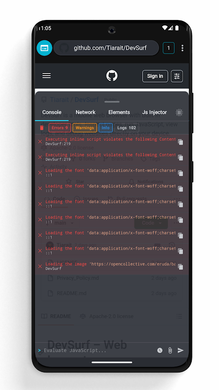 DevSurf, geliştiriciler ve ileri düzey kullanıcılar için tasarlanmış (standart WebView tabanlı) bir mobil web tarayıcısıdır. Dahili geliştirici araçları ve esnek tarama özellikleriyle, web sitelerini doğrudan cihazınızda inceleyebilir, hata ayıklayabilir ve test edebilirsiniz - üstelik tarayıcınızdan çıkmadan.