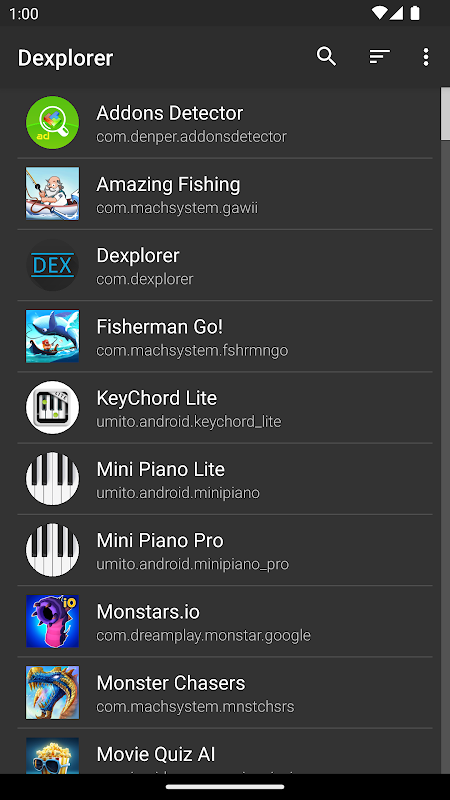 Explore yüklü tüm uygulamalarınızın Dex / Apk dosyaları ve indirilen apk's.
