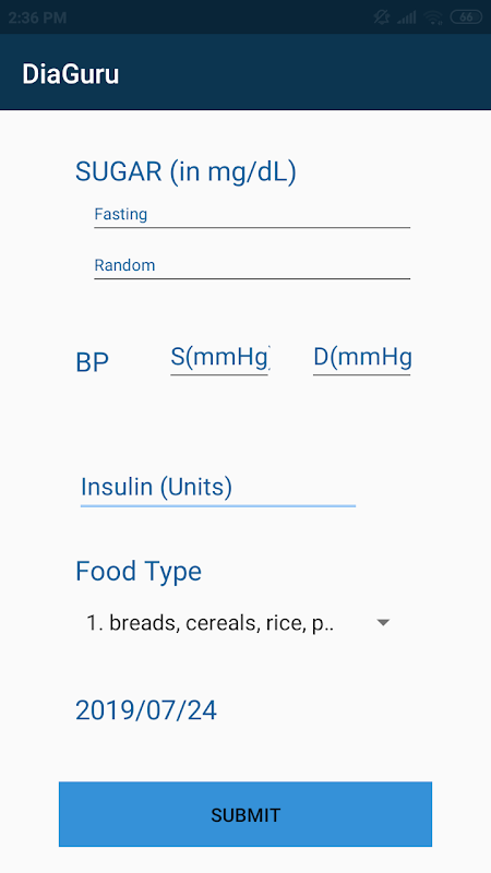 • Kullanıcı şeker seviyesini, insülin seviyesini ve besin alım türünü girebilir.