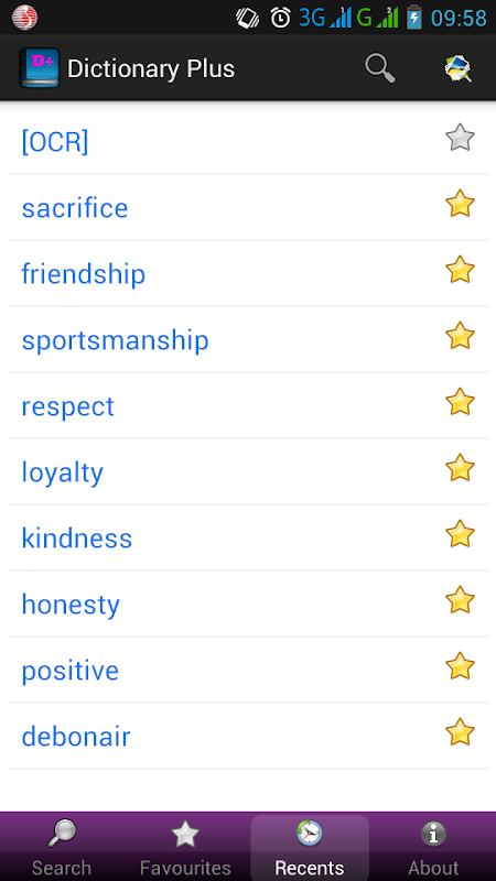* Your last visited words are all saved in your 'Recent', so that you can quickly look back at recently checked words