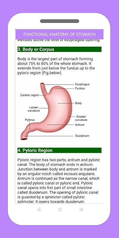 Sindirim sistemi uygulaması, ortak konuları içeren aşağıdaki bölümleri içerir.