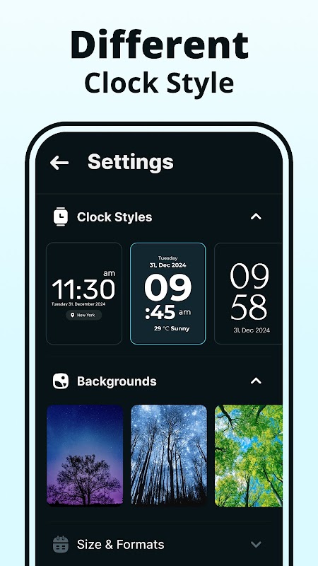 Güzel büyük saat widget stilleri, saat duvar kağıtları ve akıllı saat görünümü, kullanıcıya uygulamayı kişiselleştirmenin kusursuz bir yolunu sunarak, kullanıcıların zaten önemli bir seçime ve uygulama üzerinde kontrole sahip olmasına katkıda bulunur. Uygulama, kullanıcılara parlaklık, karanlık mod, çalar saat vb. gibi daha spesifik bir şekilde özelleştirebilmeleri için kişiselleştirme özgürlüğü sunar.