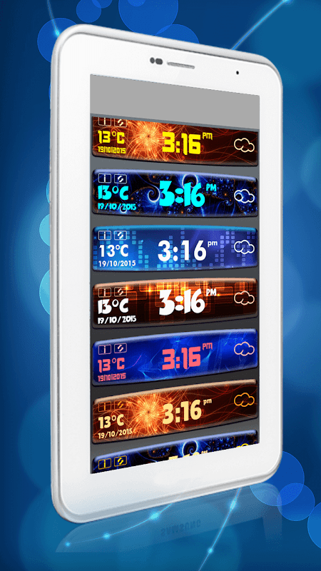 Farklı boyutlarda ve şekillerde Üst Widget saatler.