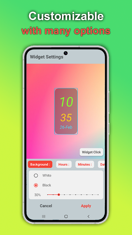 ✔ RGB renk seçiciyle tarih ve saat için milyonlarca renk seçin.