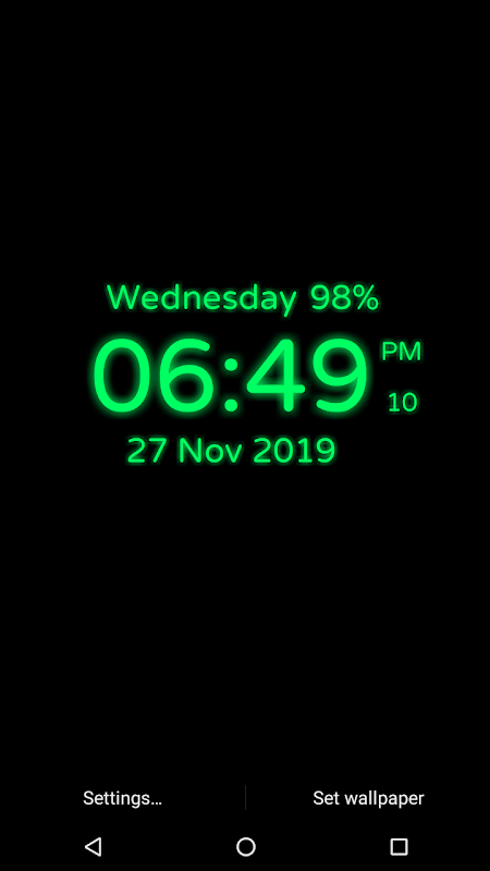 Dijital Saat, tarihi, saati (12 Saat ve 24 Saat), pili basit formatta dijital stilde telefon ekranında yüzde olarak gösterir. saat ayrıca seçiminize göre 12 Saat veya 24 Saat formatı gösterir. Saniye, pil, tarih gibi herhangi bir göstergeye ihtiyacınız yoksa seçmek istediğiniz kadar tarih formatı da ekliyoruz, bu yüzden sadece gizle ve ekranda gösterme seçeneğini seçin. Renkli piker ile saat rengini ve iki saat stilini sadece saat stilini seçebilirsiniz.