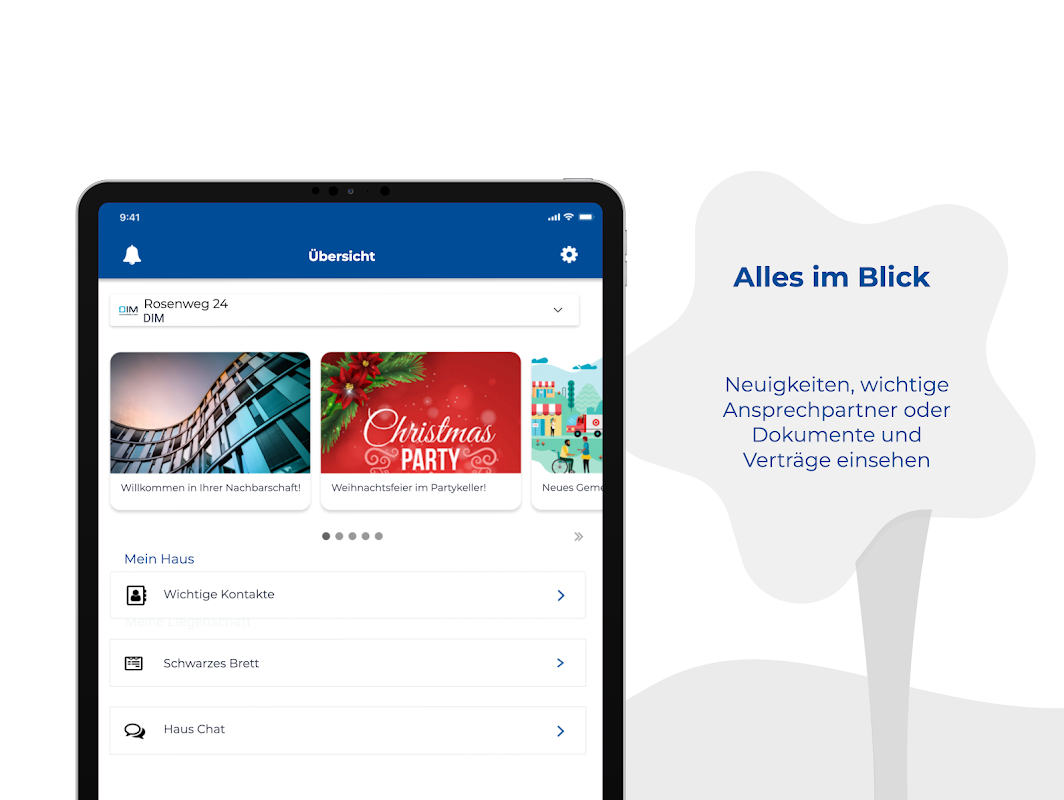 DIM App - çevrimiçi mülk yönetiminiz. Doğrudan iletişim ve bilgi için uygulama.