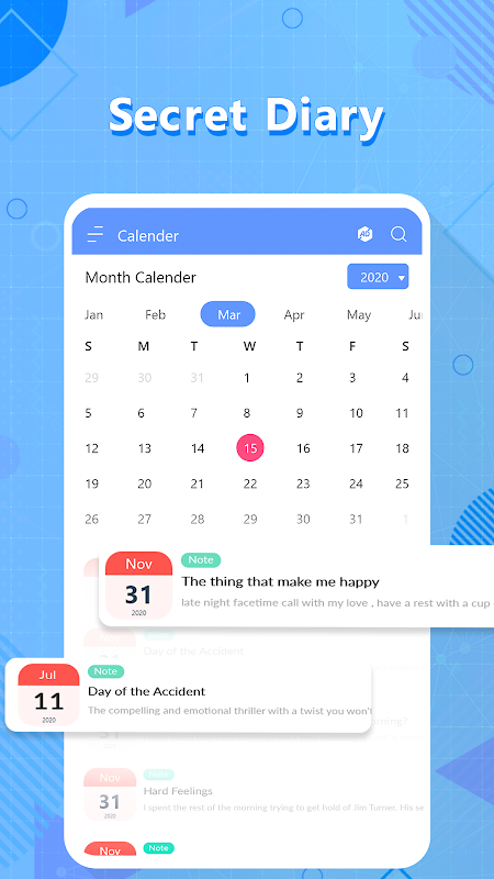 Bu basit ve ilginç çok amaçlı günlük yazma uygulamasıyla günlük düşüncelerinizi, hislerinizi, aktivitelerinizi ve anılarınızı korumak size yardımcı olacaktır: