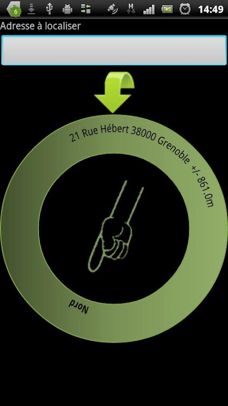 Get quickly your direction, without map nor any complication. Type an address, and Direction_simple will show you the way to reach it, and the distance you are from it.