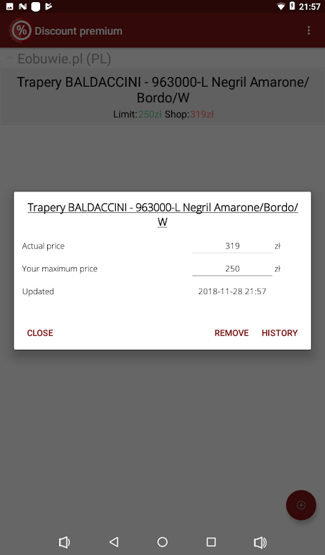 Seçtiğiniz ürünlerin fiyatlarını (seçilen mağazalarda) her gün kontrol edecek ve fiyat sizin belirlediğiniz maksimum fiyattan düşük olacaksa bildirim gösterecektir.