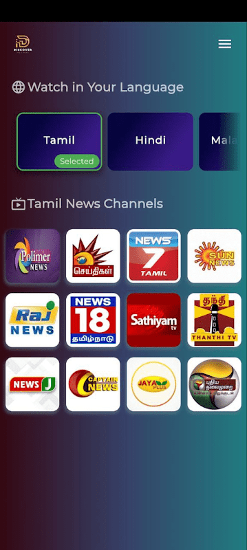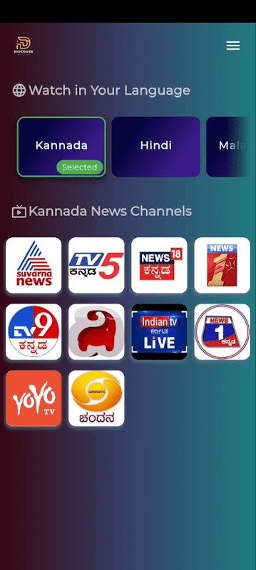 İngilizce, Hintçe, Malayalamca, Tamilce, Kannadaca, Telugu dilindeki tüm önemli canlı kanallar bu uygulamada mevcuttur ve Dünya Haberleri ve İş Dünyası Haberleri mevcuttur. Son dakika haberlerine her zaman ulaşabilirsiniz.