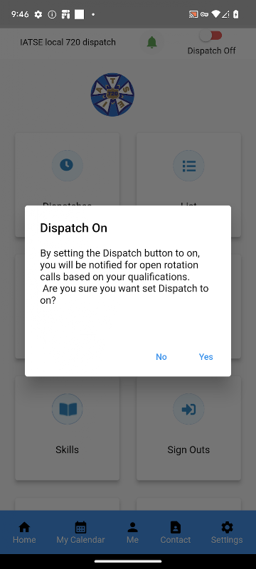 Dispatch Mobil Uygulamasını kullanmak için Las Vegas, NV'deki IATSE Local 720'nin aktif referansı olmanız gerekir.