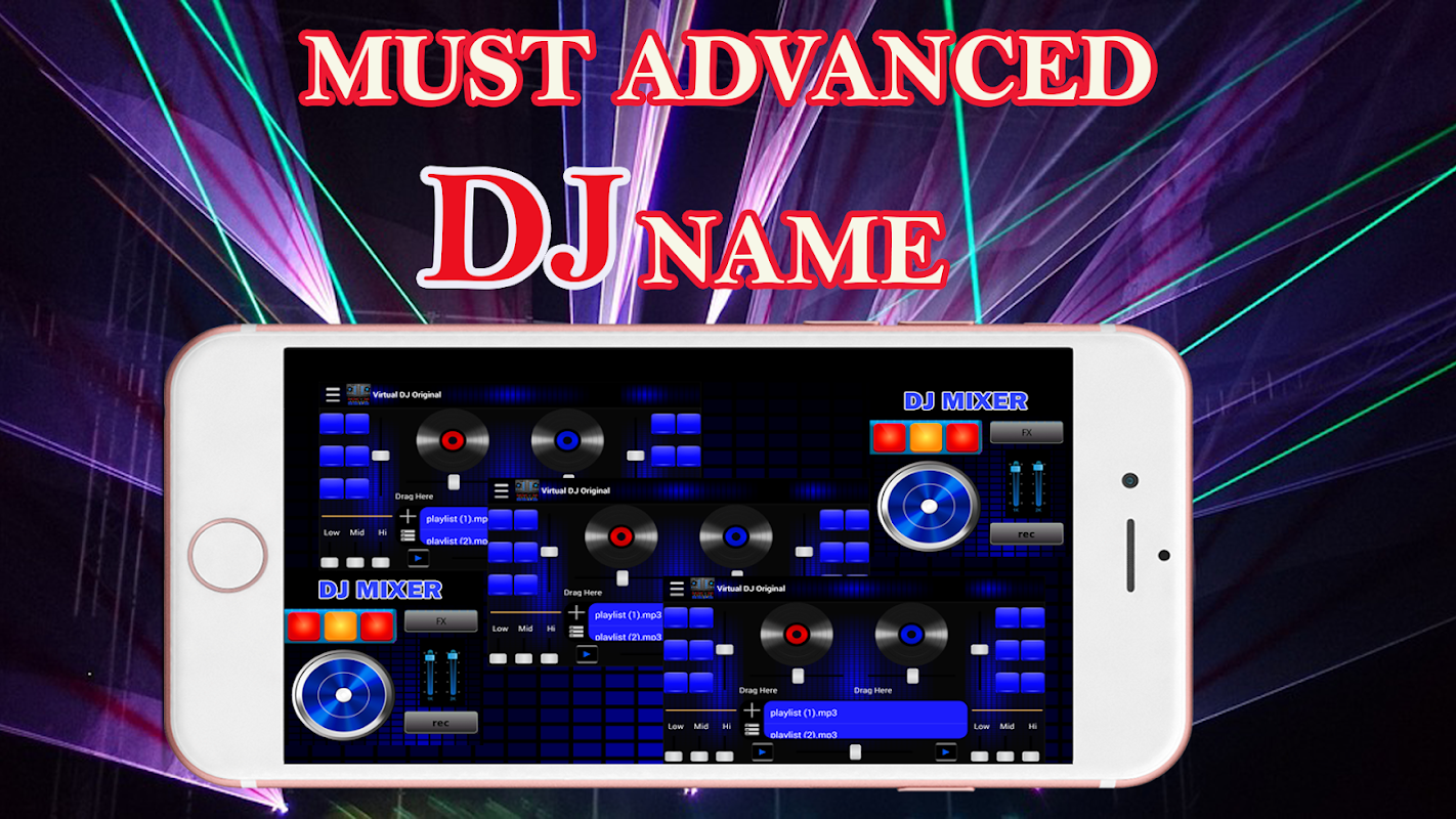 DJ NAME MIXER & DJ NAME CREATOR is an application with dj name drop maker features remixes of the song, the beginning, the loop to create, save and playlists. its easy for amateur DJ lovers, come with many features try it now you will love this dj simulator app and make music professionally dj name app.