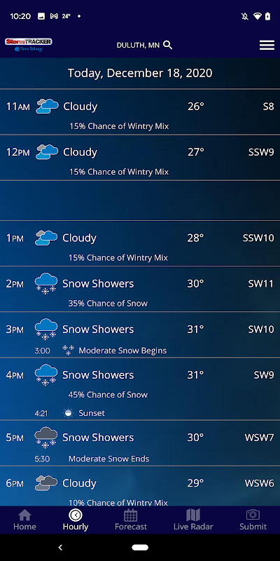 Duluth News Tribune Hava Durumu Uygulaması şunları içerir: