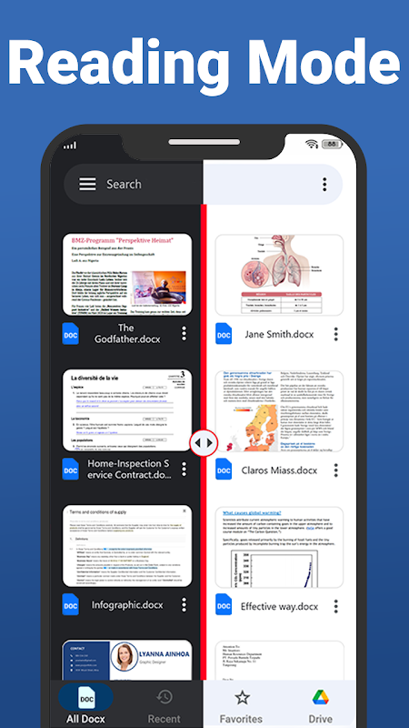 • Belge okuyucu ve PDF belge görüntüleyici, tüm Docx, doc dosyalarını okur.