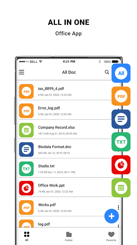 - Hızla doc, ppt, xls, pdf, txt dosya formatlarını açın.