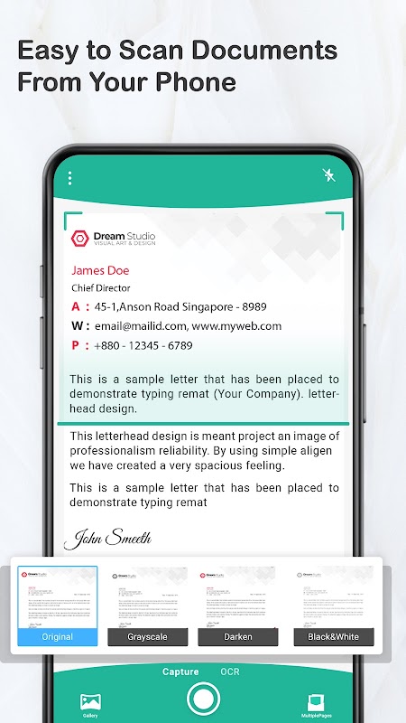 - Rotate/Enhance the visibility of your documents after scanning using built in effects