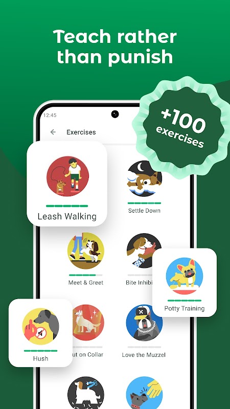 ★ Choose what to teach your pup from the library of +100 dog tricks with video instructions.