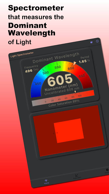 Bu uygulama size farklı ışık kaynaklarının baskın dalga boyunu çok kolay bir şekilde ölçme olanağı sunar.