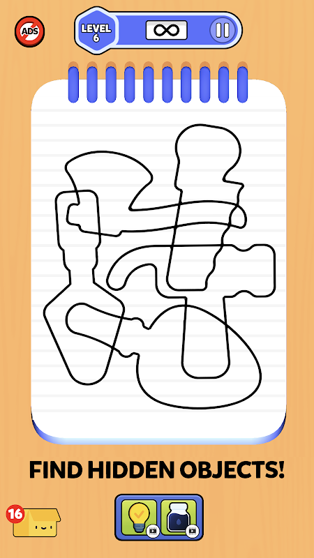 Defterde karalanmış gizli nesneleri ortaya çıkarın. Nesneleri doldurmak ve ortaya çıkarmak için dokunun.