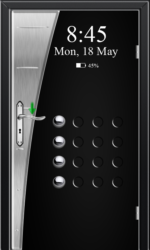 This is the best looking lock screen designed.A unique looking lock screen application.Screen Door Unlock will work as a real lock screen.When you place your finger on the door handle and keep pulling down, your screen will be unlocked.