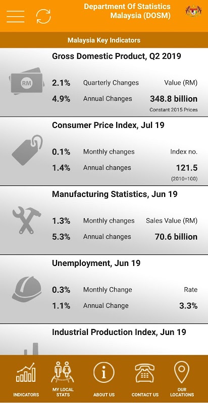 İlk kez, DOSM ilçe düzeyinde istatistikleri, toplumun her kademesi tarafından anlaşılması daha kolay olan, Infographic şeklinde tanıtmaktadır. Bilgi MyLocal Stats olarak bilinen mobil uygulama etkileşimli sistem aracılığıyla tanıtıldı. MyLocal Stats, kullanıcıların bölgelere ve yerel kalkınmanın planlanması için yerel seviyelere kadar istatistiklere erişmelerine yardımcı olacaktır.
