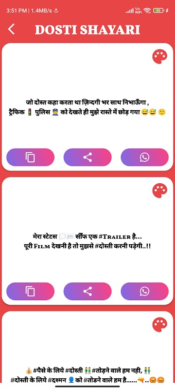 This Dosti and friendship Shayari app is a amazing and great Shayari application having lot of Shayari messages for you with offline to use.also categories as well dosti, veer shayari, hindi friendship shayari,