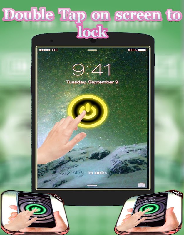 Double Tap on Screen to lock is an application help you double tap to Screen On/Screen Off Double Tap is an app that helps you protect the power button. Double Tap Off also help you turn off the screen quickly with just two times touching the home screen.