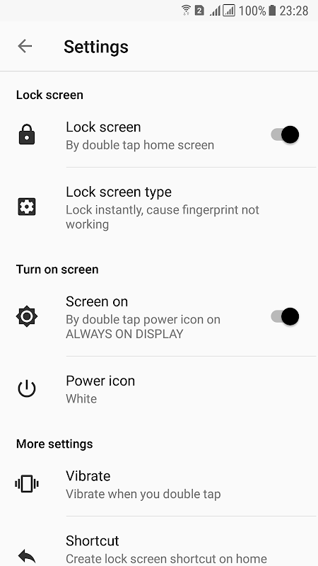* For devices support fingerprint you will not be able to use fingerprint after double tap to lock screen, this is a security problem from M OS. We provided a solution for it we shorten screen timeout and show digital clock before lock and you can use fingerprint normally.