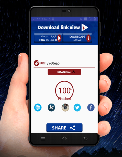 * شارك مقاطعك المحمله على جميع مواقع التواصل من خلال صفحة التنزيلات .