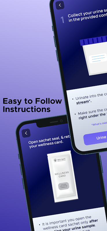 1. Sağlık kartını 1 saniye boyunca sağlanan idrar kabına batırın; iki dakika bekleyin ve ardından Neodocs uygulamasını kullanarak tarayın