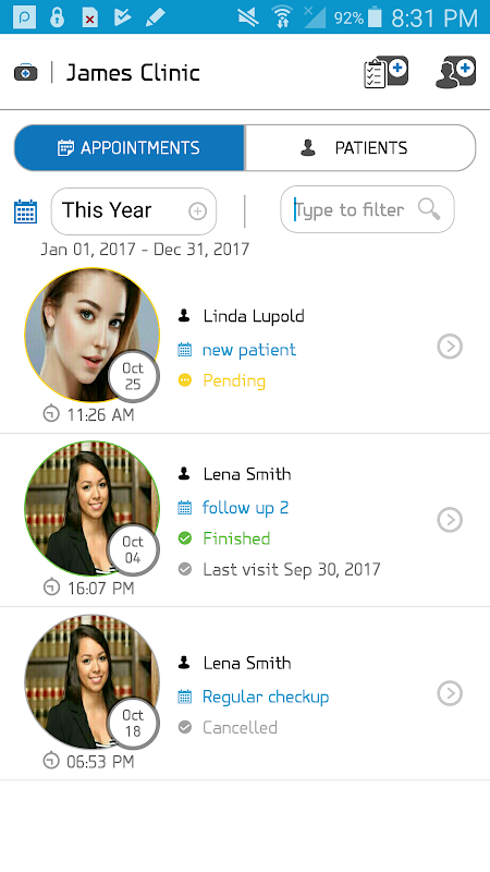 ✓ Hastanın randevularını, ziyaret geçmişini ve tıbbi kayıtlarını oluşturun ve takip edin.