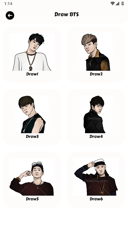 Uygulama, kullanımı basit olan kullanıcı dostu bir arayüze sahiptir. Her biri kendine özgü stil ve özelliklere sahip çeşitli BTS üyeleri arasından seçim yapabilirsiniz. Çizecek bir üyeye karar verdikten sonra, idolünüzün gerçekçi bir portresini oluşturmak için adım adım talimatları izleyerek başlayabilirsiniz. Uygulama, ilk çizimden son rötuşlara kadar her adımda size yol gösterir.