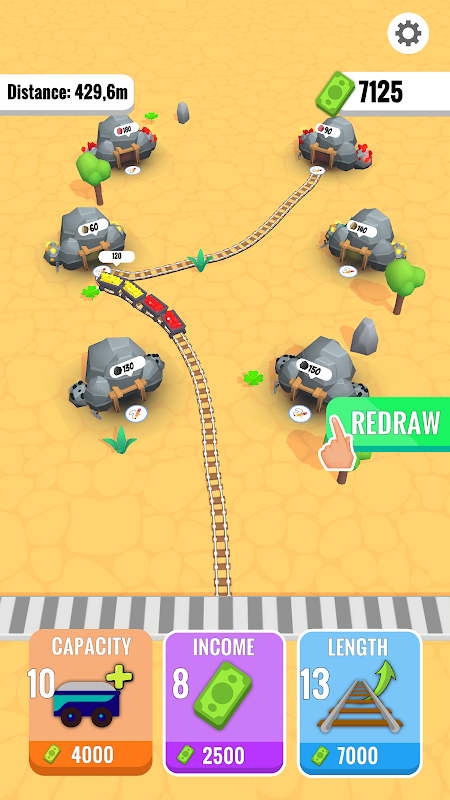 Oyunda ilerledikçe, daha fazla mineral taşımak için vagonunuzu yükseltmeniz ve daha fazla madenlere ulaşmak için daha uzun yollar çizmeniz gerekecek. Her yükseltme ile işleme tesisine daha fazla mineral taşıyabilecek ve daha fazla ödül kazanabileceksiniz.