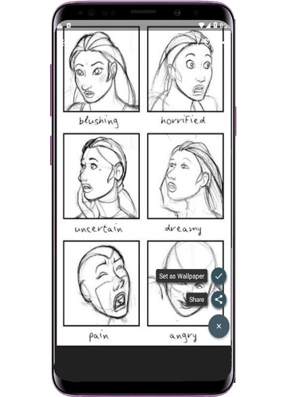 Bu çizim öğreticisinde bu uygulama, duyguları ifade etmek için değişen yüz kısımlarını yönlendirir, daha sonra çeşitli yüz ifadelerinin nasıl çizileceğini göstermeye devam eder. Bu uygulama, karmaşık ancak çoğu zaman kullanılan birçok duyguları dahil etmeye çalıştı, ancak bu hiçbir şekilde bir yüzün ifade edebileceği şeylerin tamamını temsil etmiyor.
