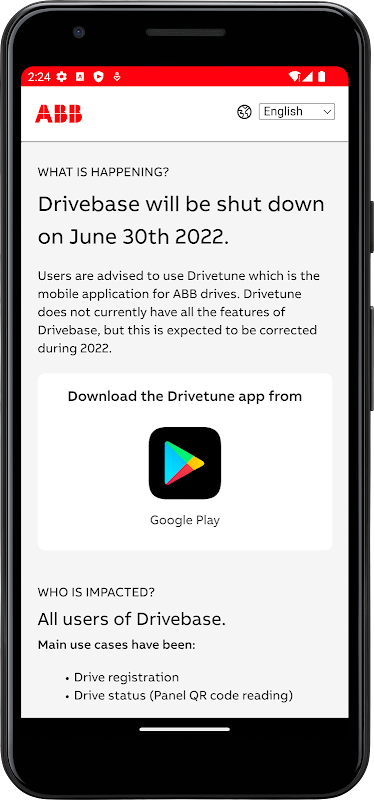 Users are advised to use Drivetune which is the mobile application for ABB drives.