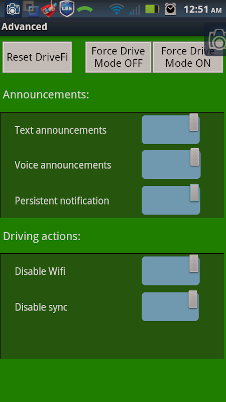 Disabling auto-sync while driving (optional) provides further power/performance improvements: If you don't need emails, etc while driving, why waste the battery power on those updates? Let DriveFi disable auto-sync until you get out of the car where you have a greater possibility to sync via wifi (faster, more efficient). Keep your phone's resources free for more pressing apps while driving, like your navigation software!
