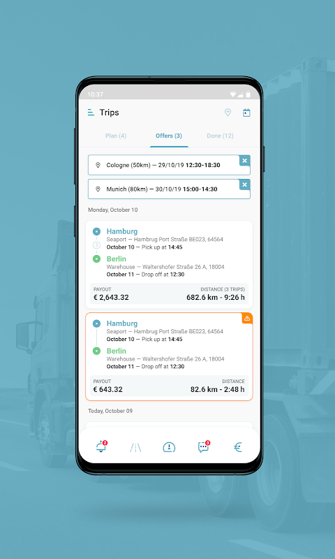 Her gün bağımsız sürücüler ve nakliyatçılar için yeni konteyner siparişleri. driveMybox konteyner taşımacılığı için dijital bir rezervasyon platformudur. Uygulama, aktif siparişlerin en büyük ağına erişmenizi sağlar.