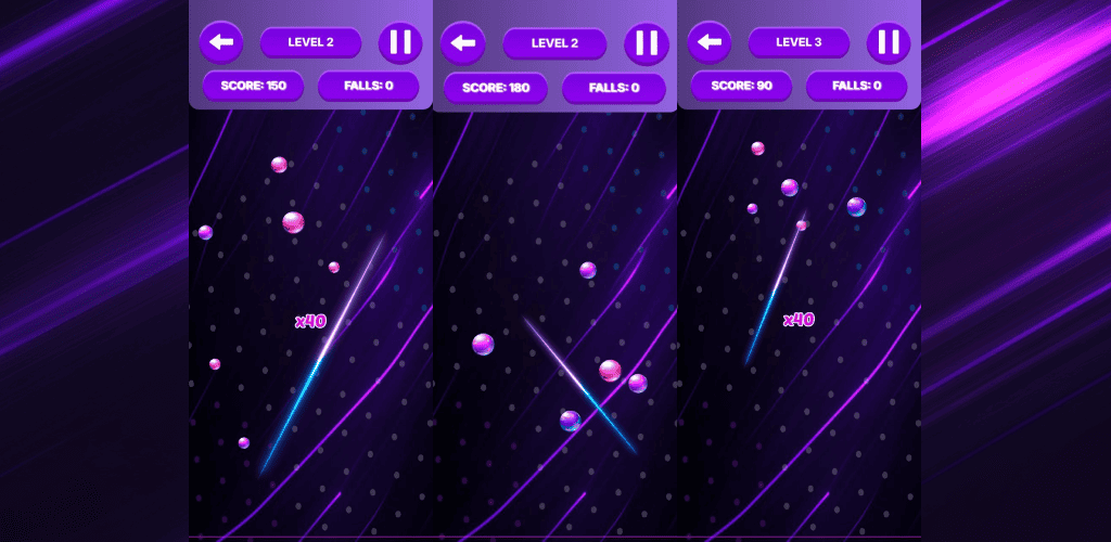 Drop Split Balls is an exciting arcade game. Your task is to cut the falling balls with a laser. Swipe your finger across the screen, activate the laser line and cut as many balls as possible to score maximum points!