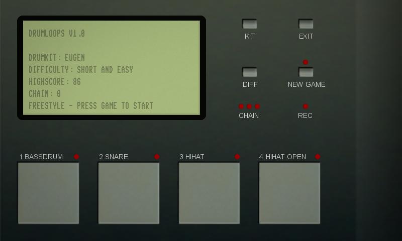 DrumLoops is a game about memorizing drumloops. The drumcomputer will play short loops you have to repeat.