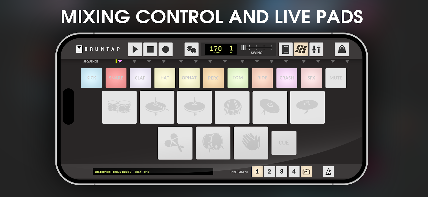 Profesyonel ses yapımcısı AVMusic tarafından tasarlanmış, kullanıcı dostu arayüze sahip modern davul makinesi. Modüler sequencer, mobil cihazlarda çeşitli beat oluşturma olanağı sunar. Hip-hop, trap, house, techno, drum and bass ve diğer türler için perküsyon sesleri kütüphaneleri içerir. Sınırsız sayıda davul enstrümanı ekleme imkanı ve hızlı akıllı rastgeleleştirici, canlı performansta farklı bir ses oluşturmanıza ve parçalarınız için yeni bir ses bulmanıza yardımcı olur. Canlı performans için düşük gecikmeli pad'ler ve canlı performans kaydı için kanal düğmeleri. Bu uygulama, canlı performanslarınıza ve müzik prodüksiyonunuza harika bir katkı sağlayacaktır.