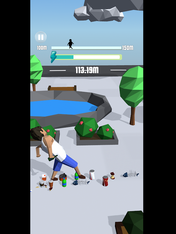 Control the drunk man to wreck all trash.