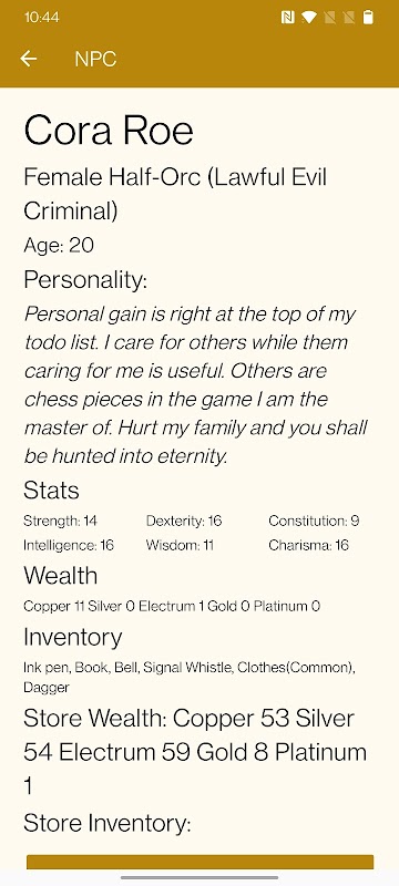Bu, Dungeon Masters'ın ihtiyaçlarına göre uyarlanmış canlı insanlarla hızlı bir şekilde Kasabalar oluşturmasına yardımcı olmak için tasarlanmış bir araçtır. Envanter, İstatistikler, Kişilik vb. ile tamamlanmış NPC'leri ve Kasabaları otomatik olarak oluşturacaktır. Kişisel dokunuşunuzu sağlamak için özel NPC'lerinizi de ekleyebilirsiniz. Karşılaşmaları da oyununuza ekleyebilir, kendiniz yapabilir veya rastgele bir karşılaşma yapabilirsiniz. Uygulamayı kullanarak tüm bunları Kampanyanıza kaydedin ve arkadaşlarınızla oynarken tüm Kampanyalarınızı yönetin!