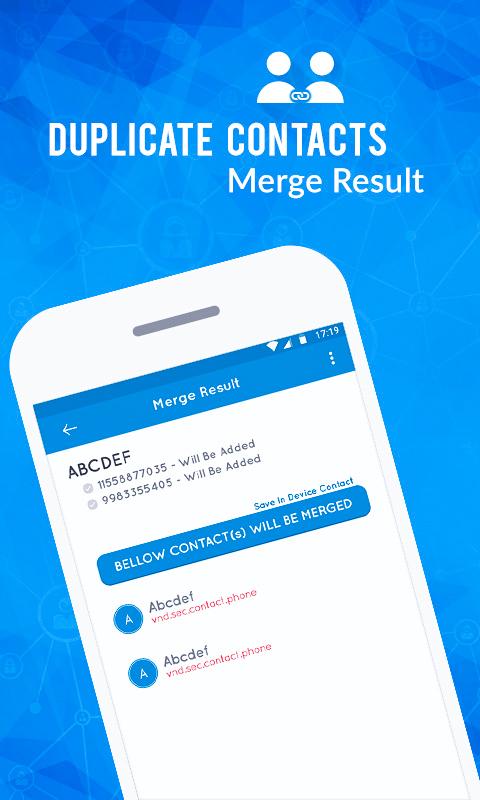 App read complete address book and take backup of all contacts. and then find duplicate contacts, contacts with similar name, phone number then show optionsto users to merge duplicate contacts, merge contacts with similar name and phone number. then finally save merged contacts to phonebook, this will make changes in your phonebook, remove duplicate contacts and add merged contacts.